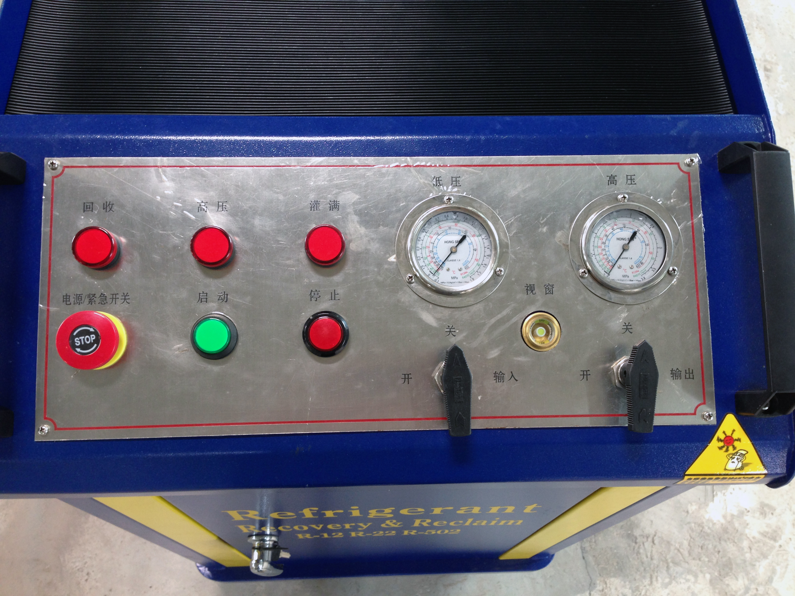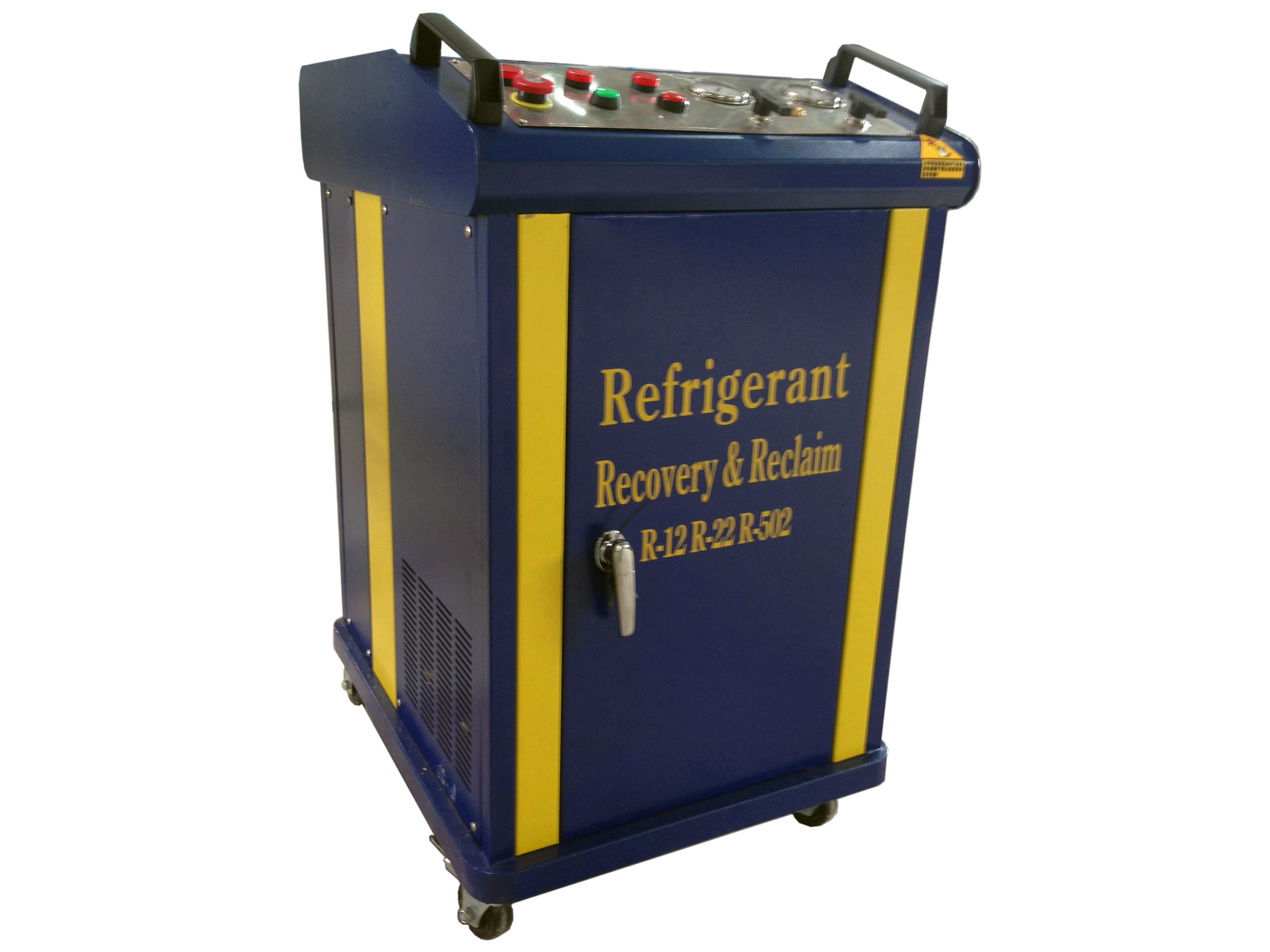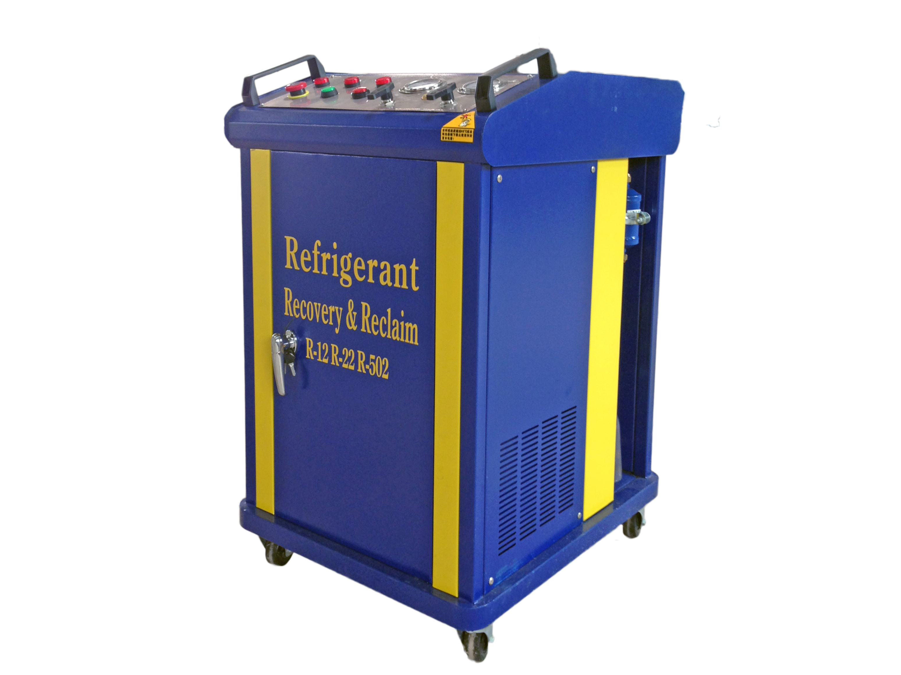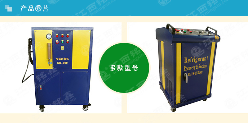 一種回收制冷劑的設(shè)備,用于回收制冷機(jī)械(冰箱、空調(diào)、冷柜等制冷機(jī))中的制冷劑。回收的同時(shí)又對(duì)制冷劑進(jìn)行一定的處理,如干燥、雜質(zhì)的過(guò)濾、油分等,以便于制冷劑的二次利用。