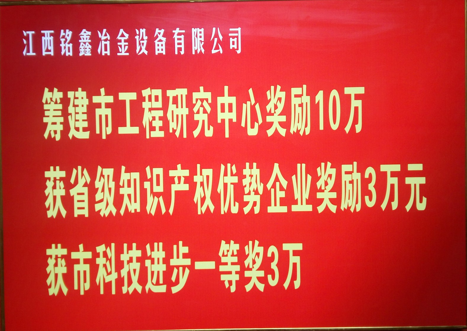 祝賀銘鑫冶金設備有限公司被評選為2016優秀企業家,并獲得籌建市工程研究中心獎勵10萬元,獲得省級知識產權優勢企業獎勵3萬元,獲得市科技進步一等獎3萬元。